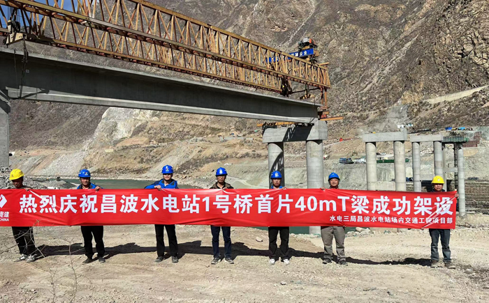 昌波水电站1号桥首片40米T梁架设 | ||||